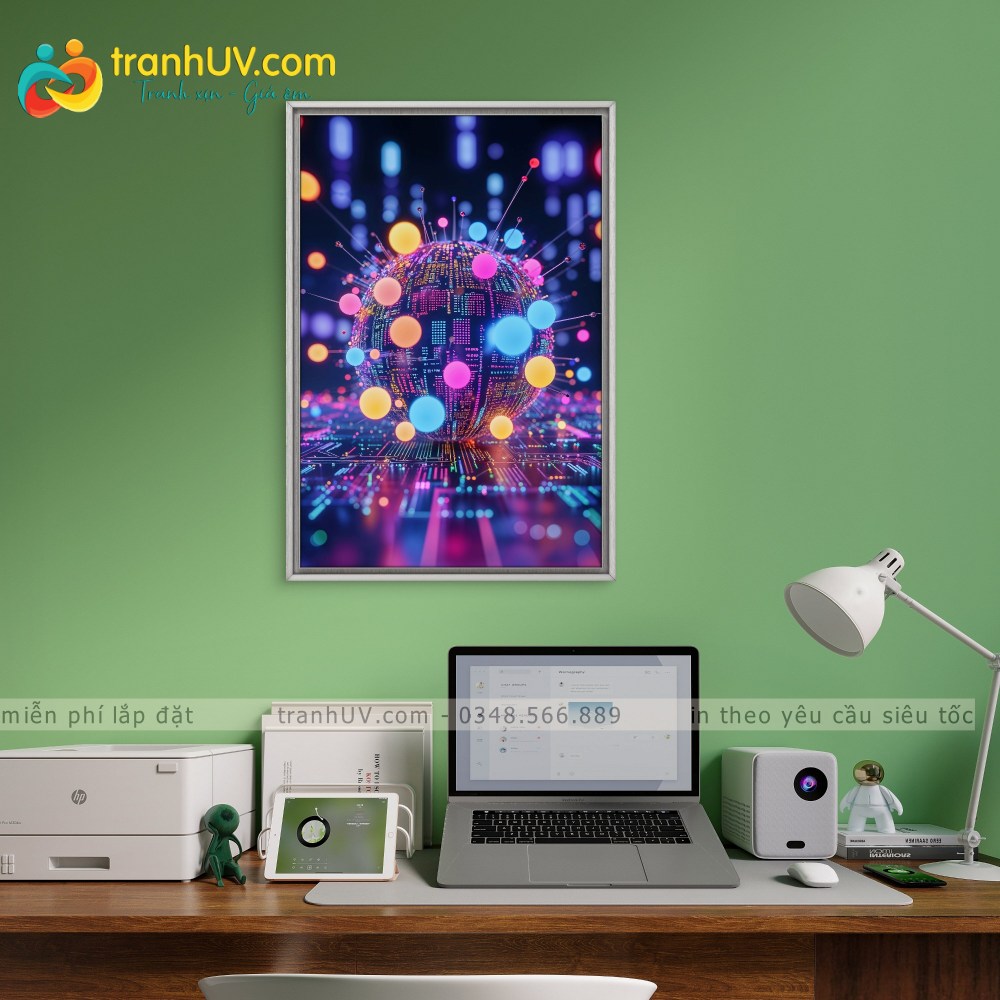 Tranh tại TranhUV.com được in bằng công nghệ UV hiện đại – mực khô ngay dưới tia UV, giúp bám chặt lên bề mặt vật liệu, chống lem, chống phai, giữ màu bền lâu dù treo trong điều kiện ánh sáng mạnh hoặc môi trường ẩm.