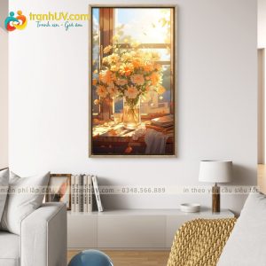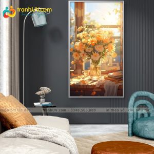 Tranh Hoa Và Nắng Trên Khung Cửa – H0008