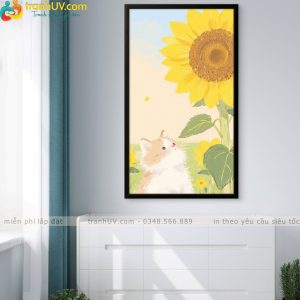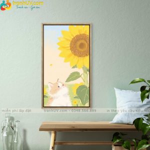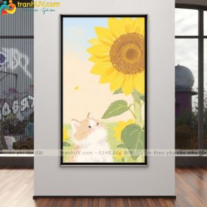 Tranh Mèo Con Và Hoa Hướng Dương – HH001