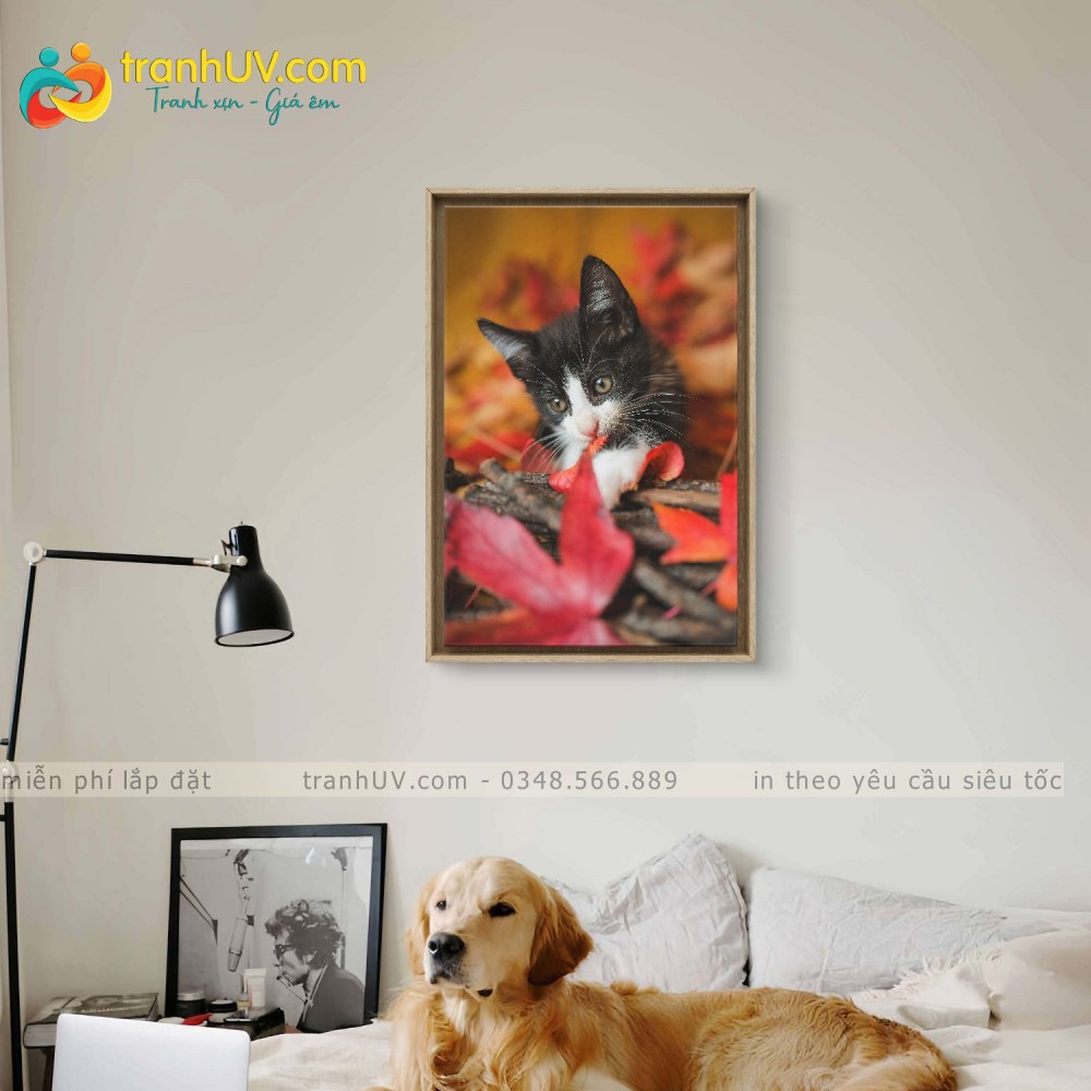 Tranh tại TranhUV.com được in bằng công nghệ UV hiện đại – mực khô ngay dưới tia UV, giúp bám chặt lên bề mặt vật liệu, chống lem, chống phai, giữ màu bền lâu dù treo trong điều kiện ánh sáng mạnh hoặc môi trường ẩm.
