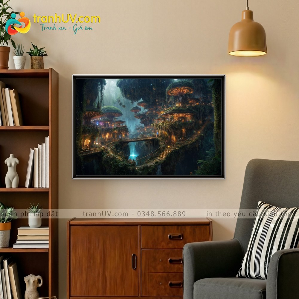Tranh tại TranhUV.com được in bằng công nghệ UV hiện đại – mực khô ngay dưới tia UV, giúp bám chặt lên bề mặt vật liệu, chống lem, chống phai, giữ màu bền lâu dù treo trong điều kiện ánh sáng mạnh hoặc môi trường ẩm.