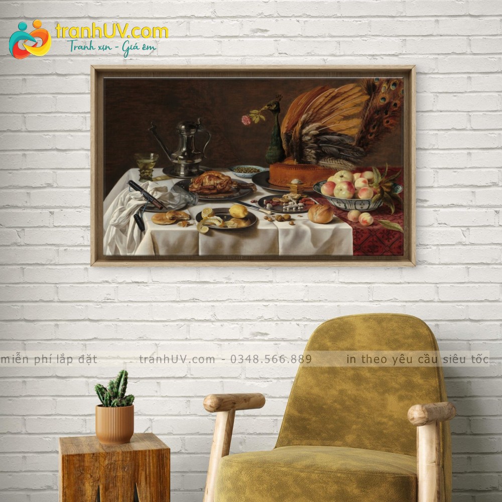 Canvas: Chất liệu vải bố truyền thống, bề mặt mềm mại, hiệu ứng giống tranh sơn dầu, phù hợp trang trí nội thất nghệ thuật, sang trọng.